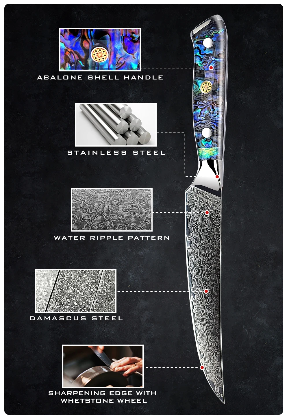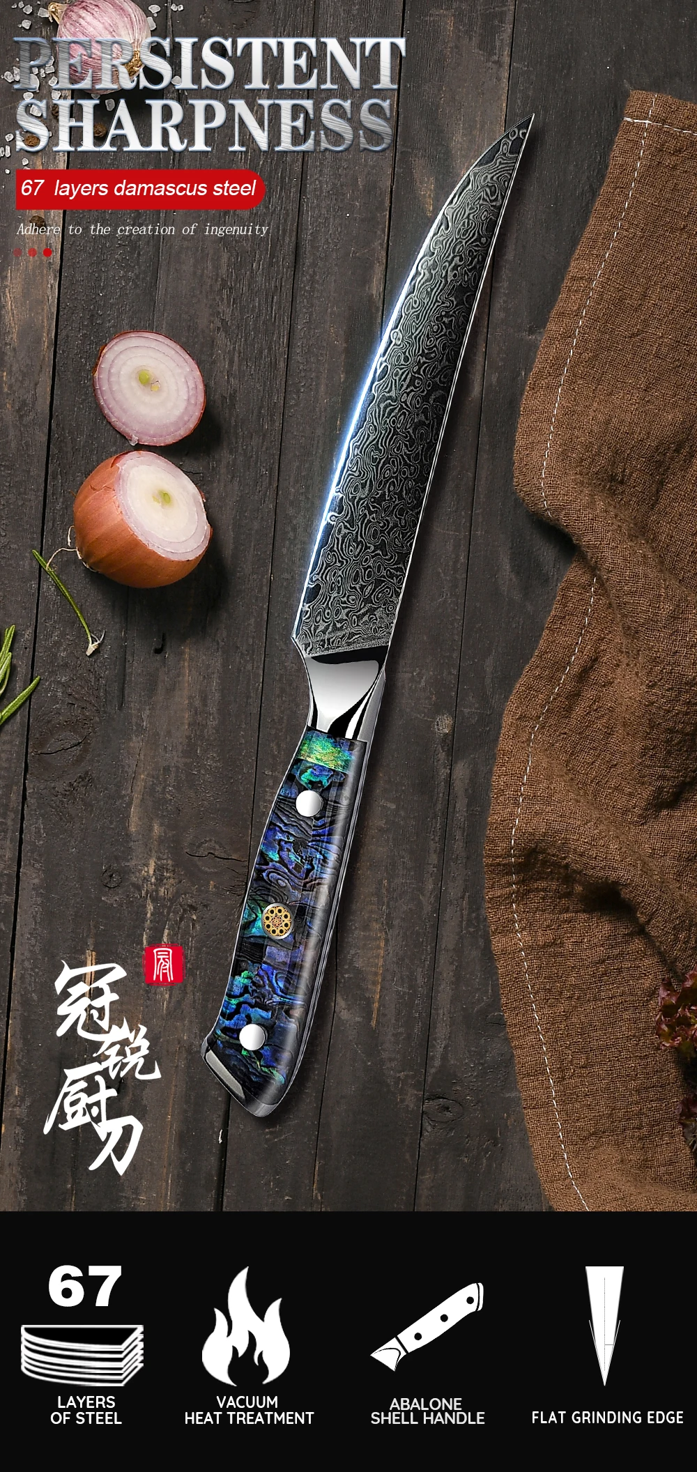 Grandsharp Professional 5.5 Inch Japanese Steak Knife Set 67 Layers Damascus Steel Kitchen Chef's Knives Meat Slicer Gift Box